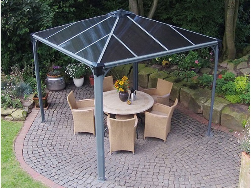 Palermo Garden Gazebo has been fashioned to deliver elegance and utility to your garden year-round. It is an attractive addition for your backyard; it can be utilized as a cool retreat from the lazy hazy days of summer, a smoking shelter or a private getaway. The Palermo’s structure is sturdy, durable, and provides protection from the sun’s harmful impact for many years of enjoyment.This all season garden living space allows you to maintain a sense of privacy; it provides you with a shaded area for relaxing your guard and enjoying your outdoor spa. It’s perfect for hosting a dinner party, BBQ grill or to simply enjoy the fresh air and view of your garden.