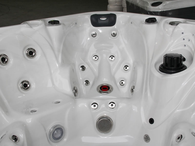 The Joy Spa features deep, wide bucket seats with each seat packed with a different massage jet configuration to deliver an invigorating personal massage. Standard bench seats separate the bucket seats for total seating of up to seven people. The Joy includes Aqua Rolling Massage as well as the fully programmable Balboa control system.