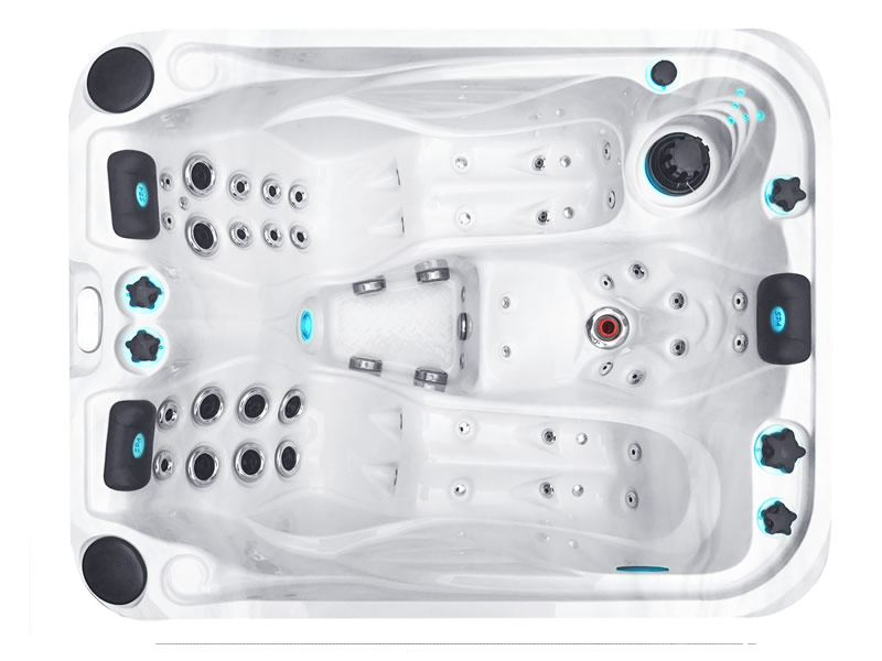 The Soulmate hot tub was introduced into the Passion Spas Signature Collection in 2018. It combines two cozy loungers with the intensive massage of the unique Aqua Rolling Therapy seat. Both loungers offer comfortable seating for people of different body lengths as well as different massage therapies.